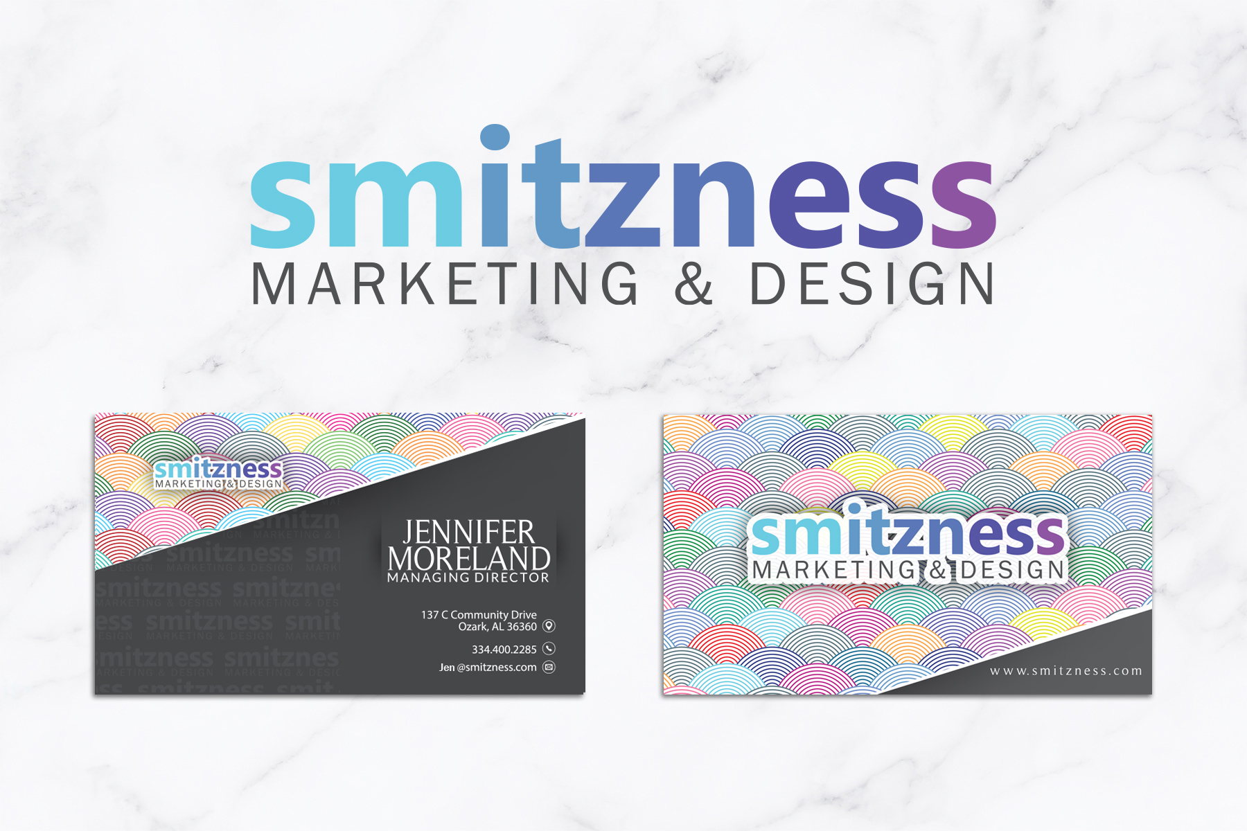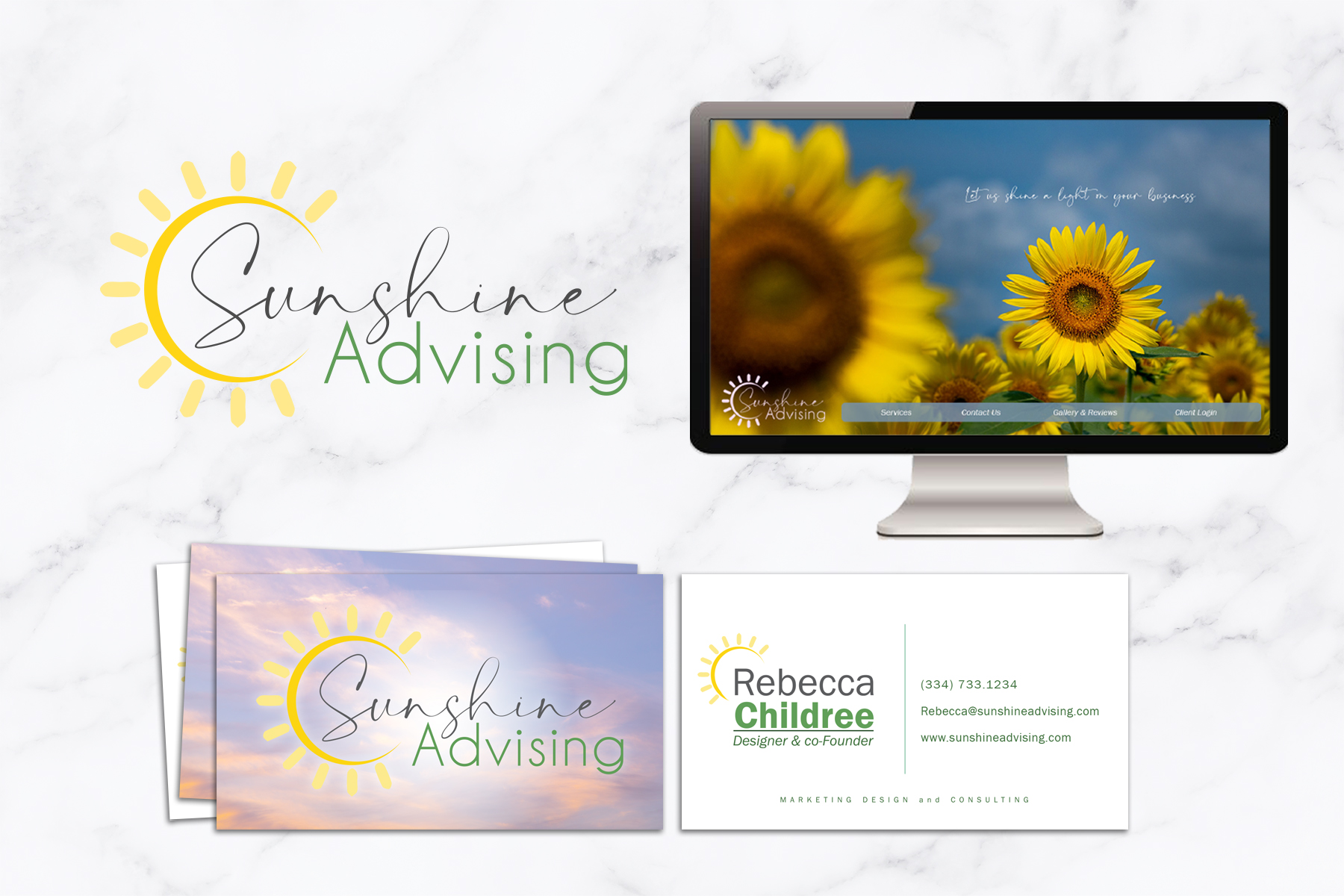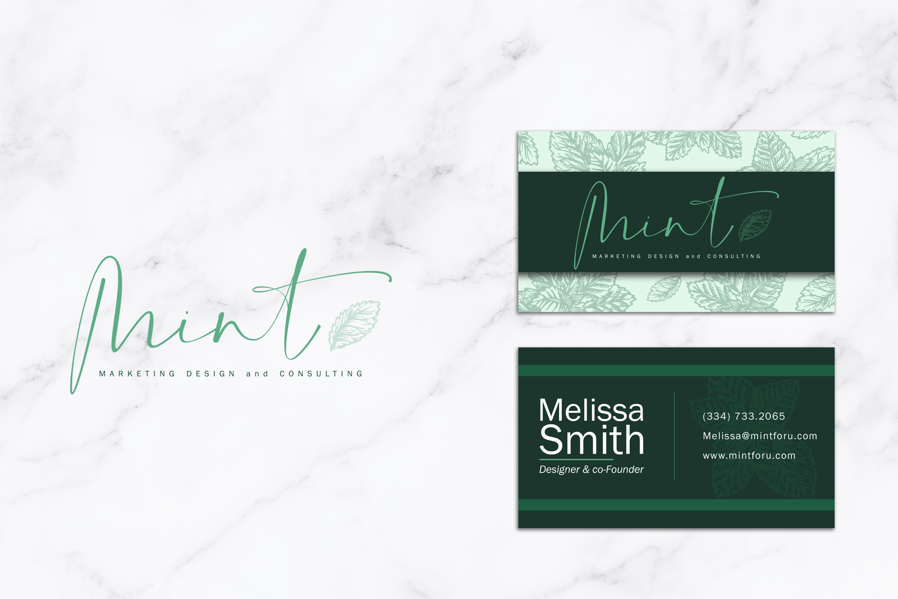 Logo, landing page and business card design.