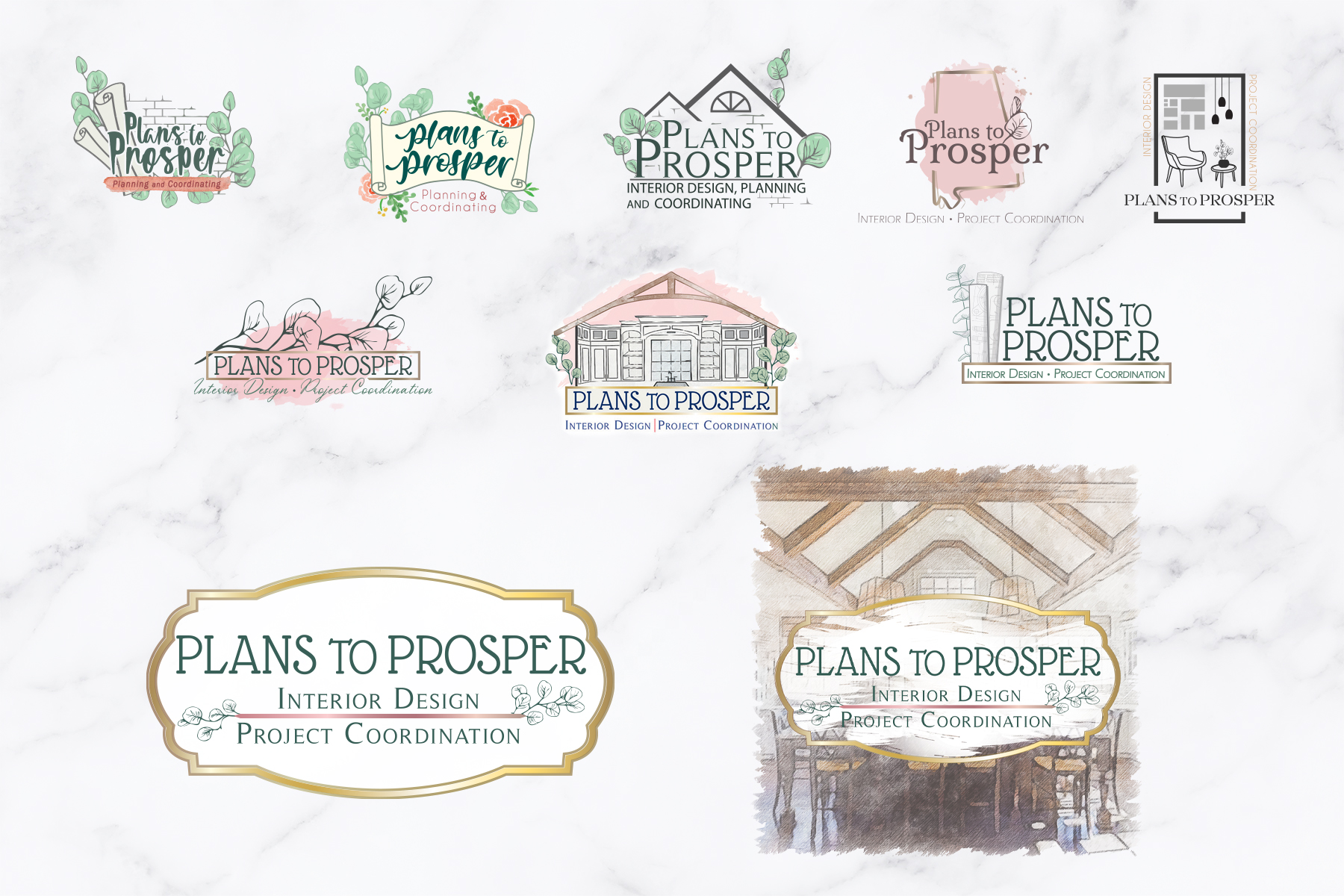 A progression of logo design for Plans To Prosper. Working closely with the client until we got the logo exactly how she wanted it.